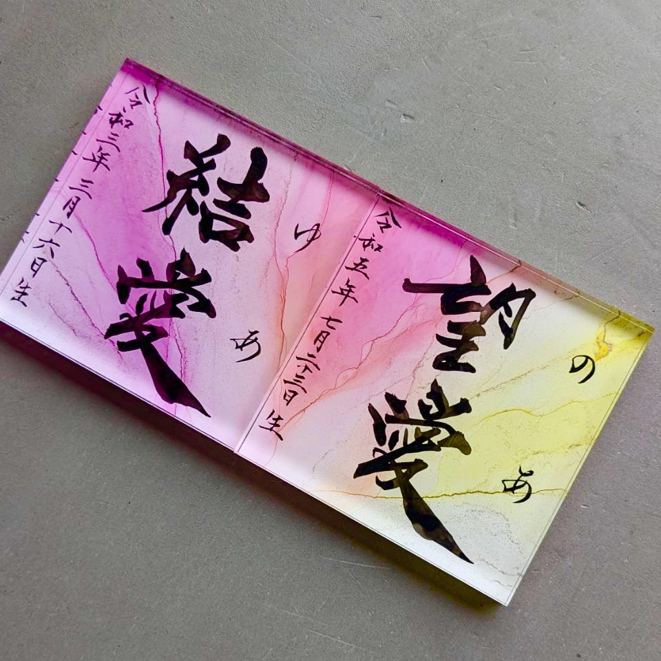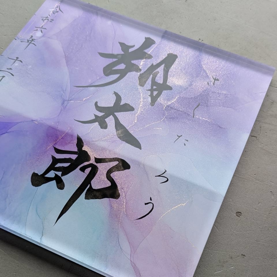 - アート制作後、書く人Liccaが文字を書き入れます。書体やデザインの細かなバランスは、基本的にお任せいただいております。